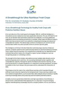 GrwNxt is exemplified in an Het Financieele Dagblad supplement, as an innovative Leader in Food that contributes to the future of food by investing in Al (Dutch).